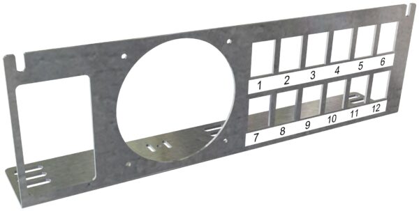for 12 Keystone modules (19.4 mm cutout) or R&M Snap-in modules, 1 cutout UP Gr. 1 and 1 FLF, empty, stainless steel