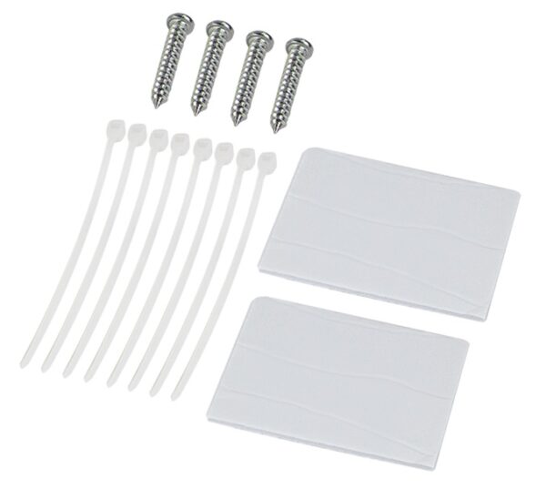 Includes: 2 adhesive pads, 4 screws, 1 cable tie