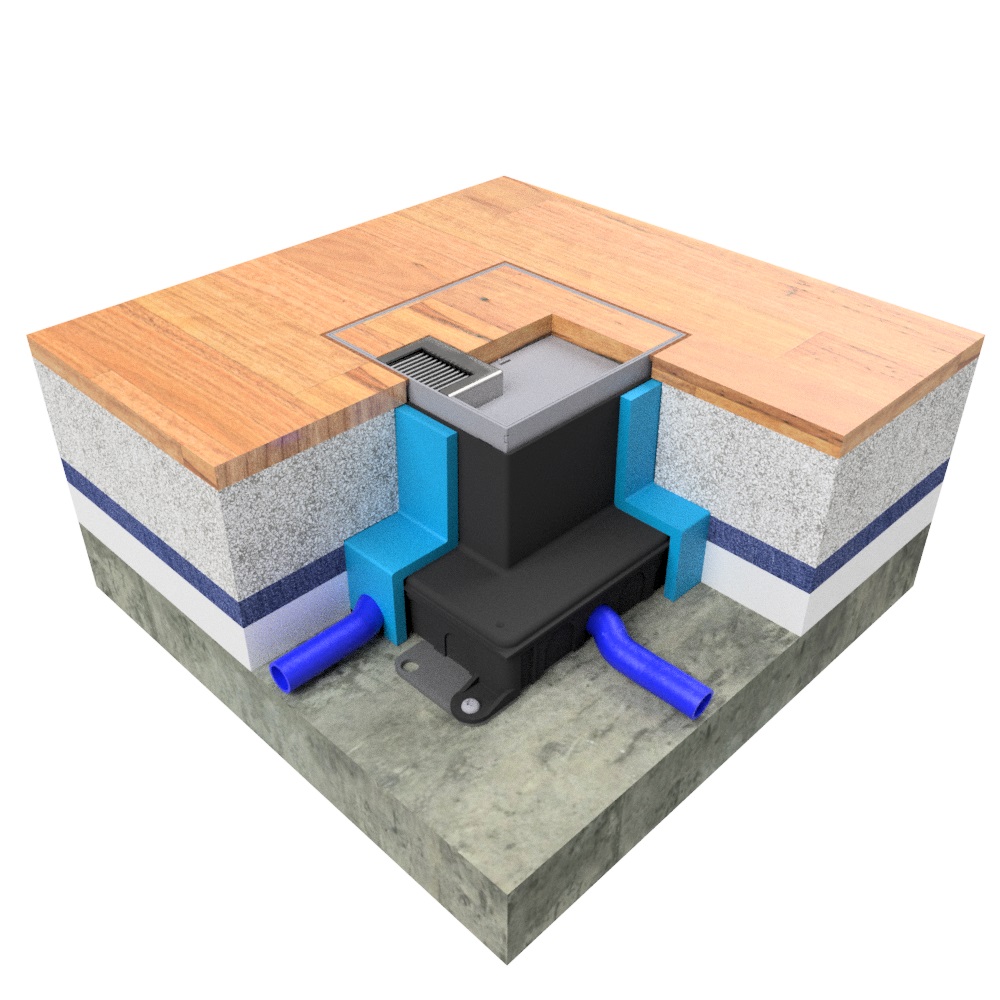 UBD 130 126 - Boîte de sol UBD 130 avec couvercle avec bord, évidement de 15mm et 1 sortie de brosse
