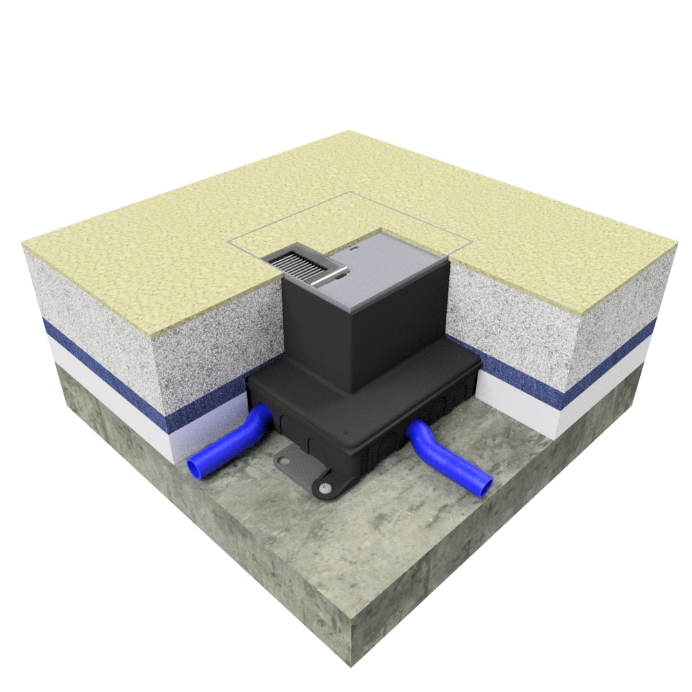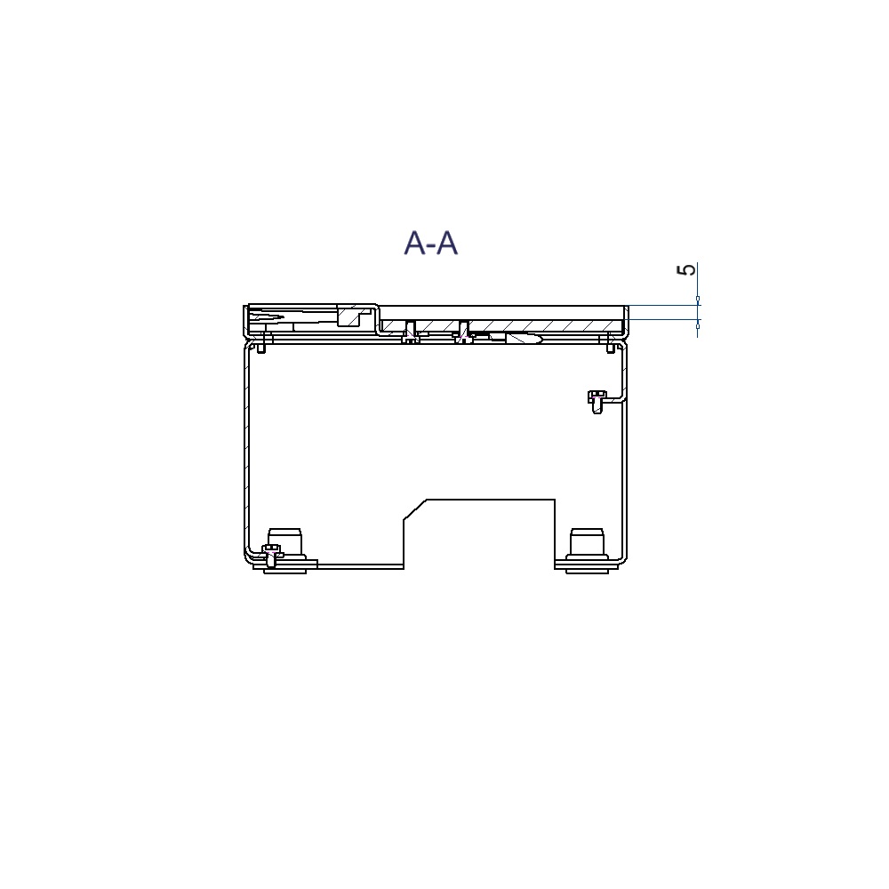 UBD 132 052 - Boîte de sol UBD 130 avec couvercle plat (SVZ), sans bord, évidement de 5 mm et 1 sortie de brosse