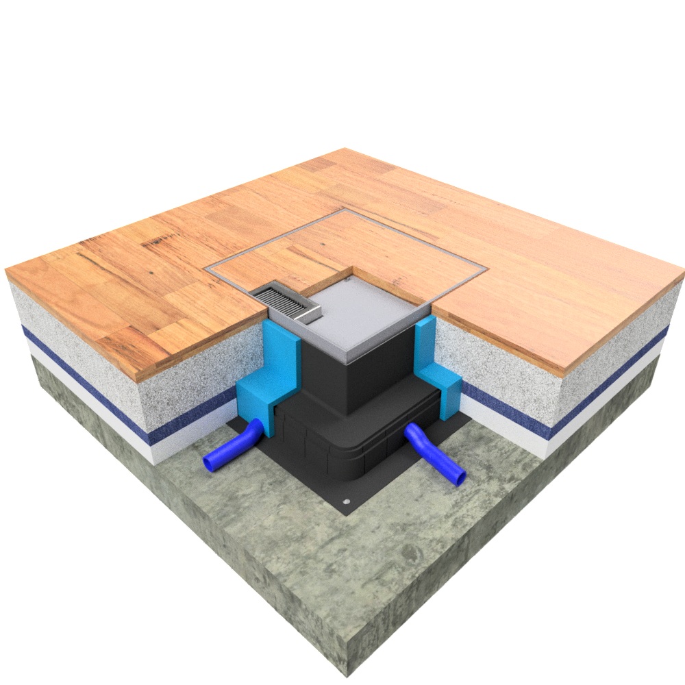 UBD 260 256 Boîte de sol UBD 260 avec couvercle avec bord, évidement de 15 mm et 1 sortie de brosse