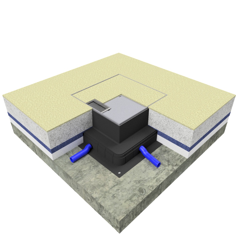UBD 262 256 – Unterflur-Bodendose UBD 260 inkl. Deckel, flach (SVZ), ohne Kante, 5mm Vertiefung und 1 Bürstenauslass