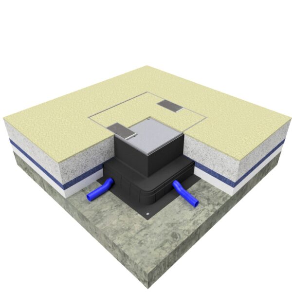 UBD 262 257 – Unterflur-Bodendose UBD 260 inkl. Deckel, flach (SVZ), ohne Kante, 5mm Vertiefung und 2 Schnurauslass