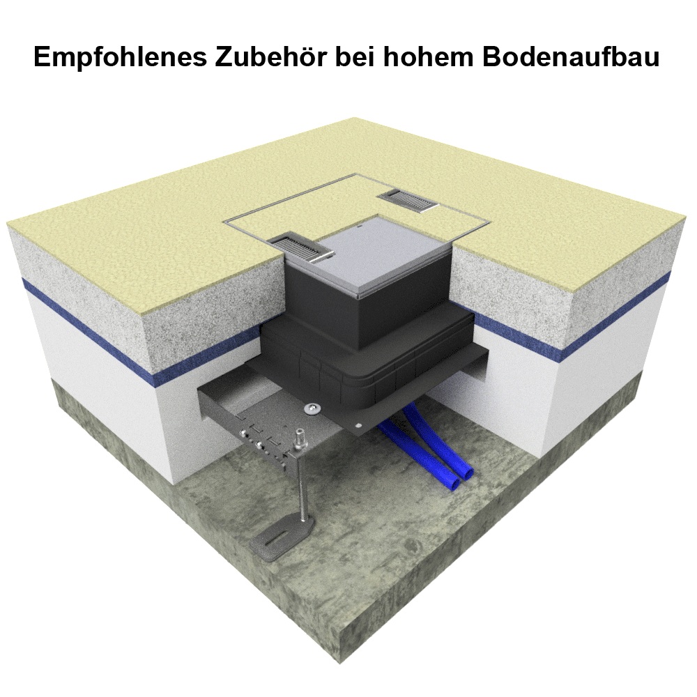 UBD 262 258 – Unterflur-Bodendose UBD 260 inkl. Deckel, flach (SVZ) ohne Kante, 5mm Vertiefung und 2 Bürstenauslässen