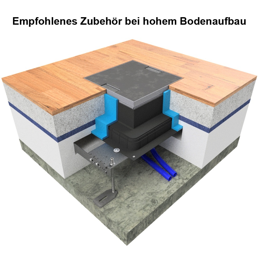 UBD 320 312 Boîte de sol UBD 320 incl. couvercle en acier inoxydable, brossé, avec 2 sorties de brosse