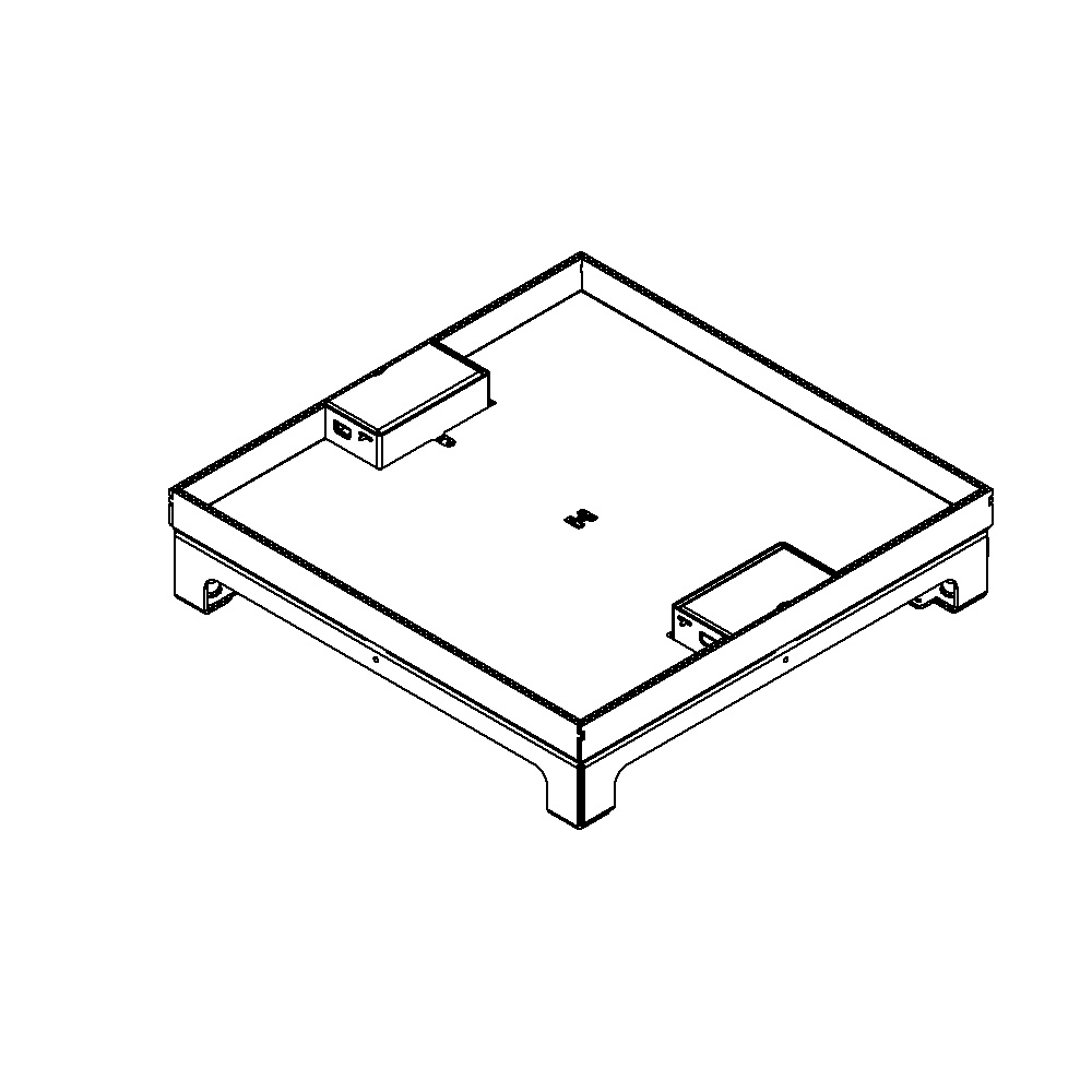 UBD 324 203 - Boîte de sol UBD 320 incl. couvercle avec bord, évidement de 20 mm et 2 sorties de cordon
