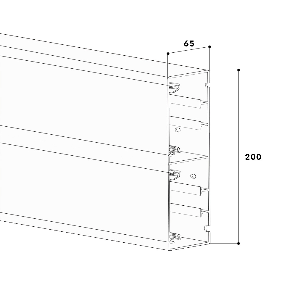 BRK 065 200 – Brüstungskanal BR 65×200/80 duo, Kunststoff PVC reinweiss RAL 9010 BR-SET, Unter- und Oberteil, mit Bodenlochung