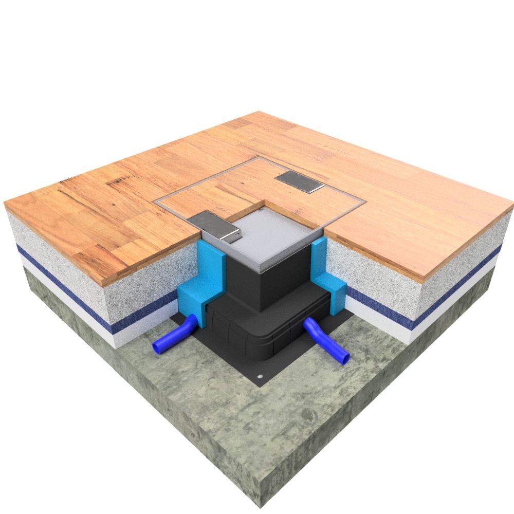 UBD 264 203 Boîte de sol UBD 260 incl. couvercle avec bord, évidement de 20 mm et 2 sorties de cordon