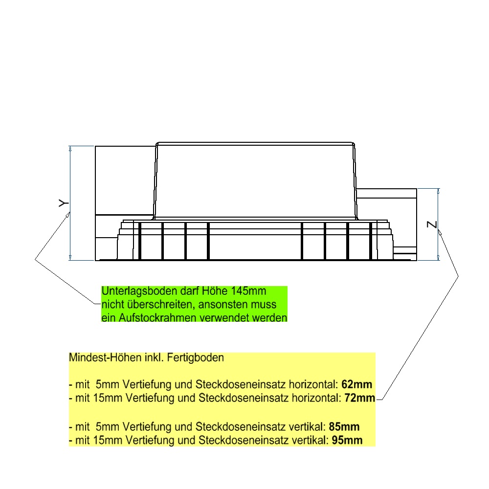 UBD 320 317 - Unterflur-Bodendose UBD 320 inkl. Deckel mit Kante, 15mm Vertiefung und 2 Schnurauslässe
