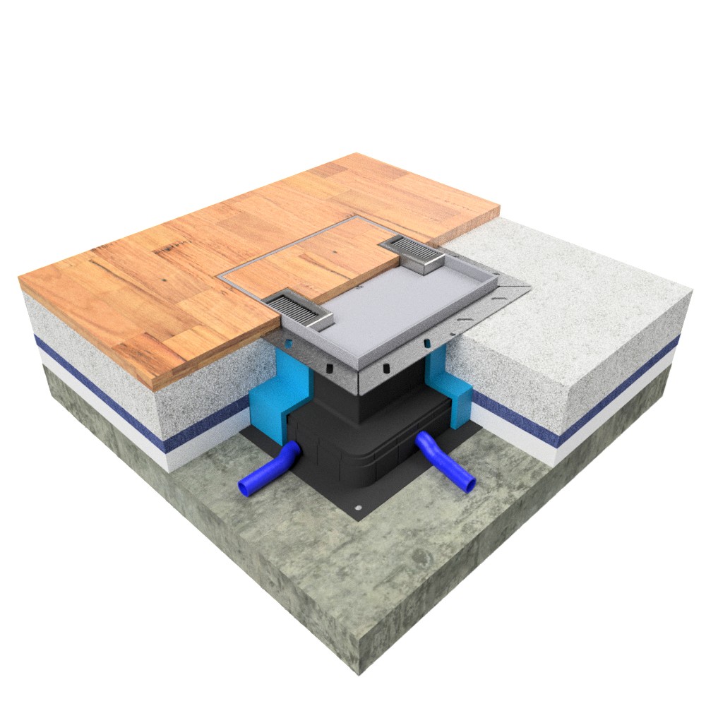 Home > Alle Produkte > UBDK 320 304 – Unterflur-Bodendose UBDK 320 inkl. Deckel mit Kante, 30mm Vertiefung und 2 Bürstenauslässen